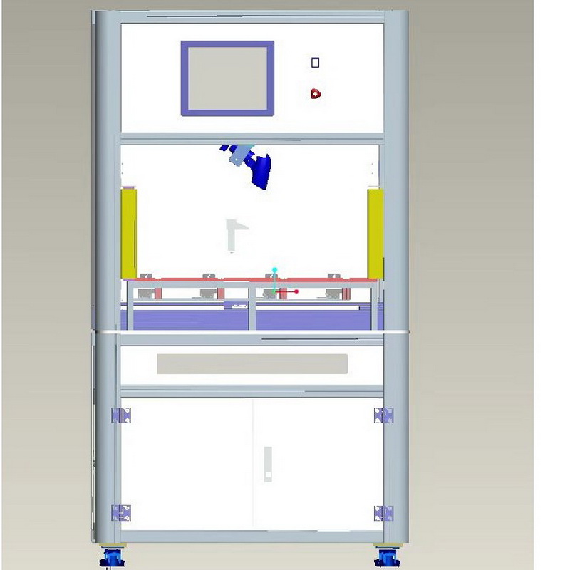 测试流程:将最多四个样品扫码后放入样品仿形夹具内,下压气缸固定样品,测试轴对第一个进行测试,旋转轴旋转侧面调整距离后进行侧面按键测试,测试完成后提示OK或NG。